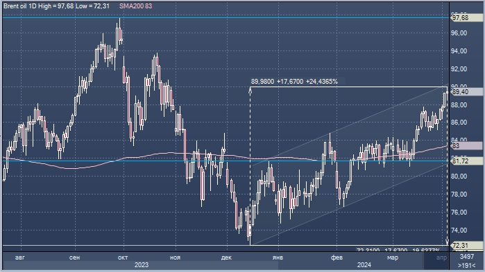 В среду, 3 апреля, цена на нефть марки Brent выросла на 0,4% до 89,4 доллара за баррель после того, как ОПЕК и ее союзники (министерская встреча в режиме онлайн) не рекомендовали вносить какие-либо изменения в существующие меры по сокращению добычи. Этот шаг означает, что действующие ограничения примерно на 2 миллиона баррелей в сутки будут действовать до конца июня.