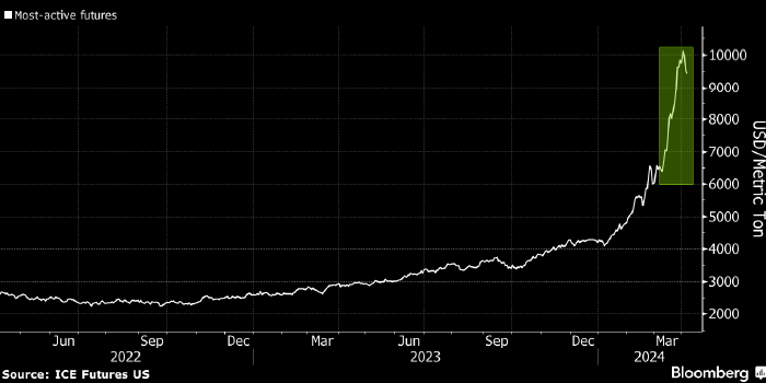 Цены на какао удвоились с начала 2024 года, продлевая историческое ралли