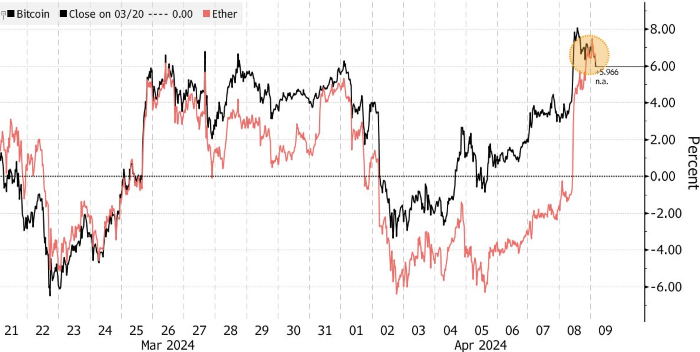 ETF-аналитики Bloomberg Intelligence Джеймс Сейффарт и Эрик Балчунас в своей заметке, опубликованной в конце марта, дали 75%-ную вероятность того, что агентство отклонит заявки на ETH к маю. По их словам, SEC может опираться на данные, «показывающие относительно слабую корреляцию между спотовым и фьючерсным рынками».