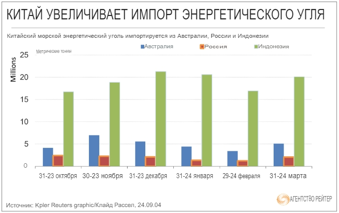 Китай импортирует энергетический уголь из Австралии, России, Индонезии