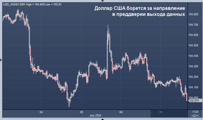 Индекс доллара, который отслеживает курс валюты по отношению к шести основным валютам, упал на 0,01% до 104,05.
