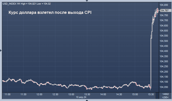 Индекс доллара отыграл потери и подскочил до сессионного максимума после того, как индекс потребительских цен в США превысил оценки. Японская иена упала, курс пары поднялся выше уровня 152, что повысило риск интервенции.
