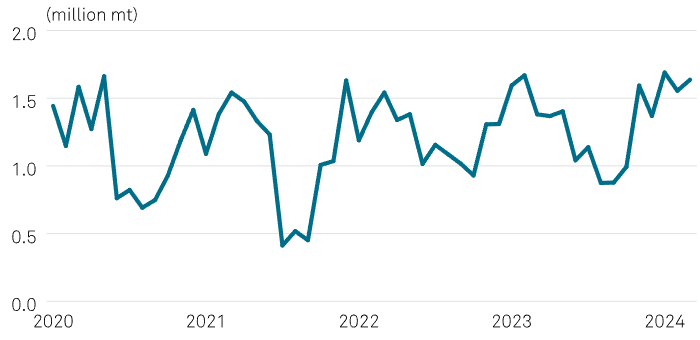 В период с октября 2023 года по март 2024 года поставки российского СПГ в Испанию составили 2,57 млн тонн по сравнению с 2,28 млн тонн за аналогичный период прошлого года, свидетельствуют данные S&P Global от 9 апреля.