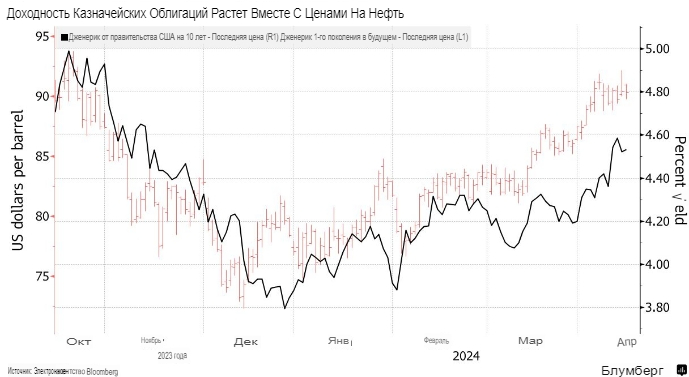 Скупка казначейских облигаций в преддверии выходных сменилась продажей на фоне надежд на то, что конфликт между Ираном и Израилем утихнет, а внимание вернется к инфляционным факторам, которые обуревают мировую экономику.