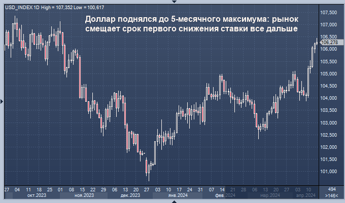 Во вторник индекс доллара США достиг отметки 106,39, максимальной со 2 ноября. На фоне укрепления доллара иена пробила отметку 154 за доллар, достигнув самого низкого уровня за последние 34 года.