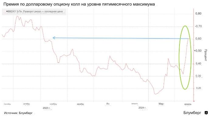 Тем не менее, инвесторы, желающие получить прибыль от дальнейшего роста доллара путем покупки опционов "колл" - которые растут в цене, если доллар укрепляется - обнаруживают, что за это приходится платить более высокую цену. Премия за спекуляцию на повышение курса доллара в ближайшие три месяца по сравнению с его падением выросла до самого высокого уровня с ноября.