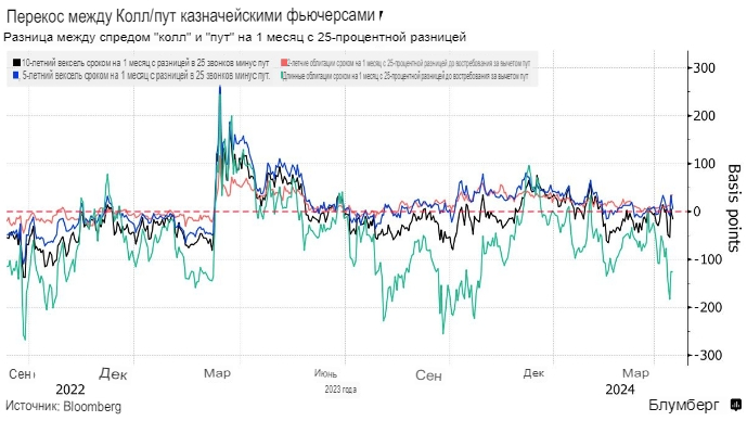 Некоторые трейдеры хеджируют свои "медвежьи" ставки. Повышенный спрос на защиту от возможности агрессивного снижения ставок наблюдался на рынке опционов, привязанных к обеспеченной ставке овернайт (Secured Overnight Financing Rate), которая в точности отслеживает политическую ставку центрального банка.