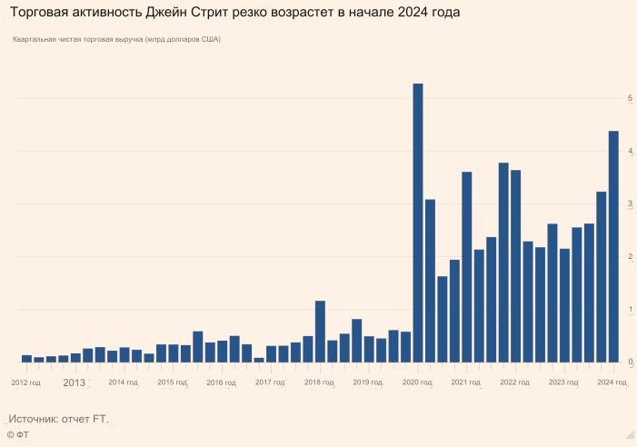 Компания Jane Street отметила в документе, что данные за первый квартал еще не прошли аудиторскую проверку и могут измениться. Она отказалась от комментариев для FT.