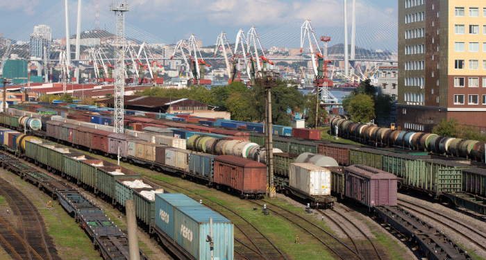 Грузовые вагоны в порту Владивостока. Фото: Bloomberg