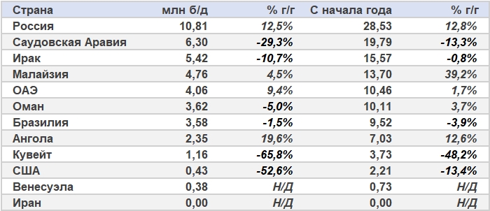 Импорт в январе—марте из Малайзии, перевалочного пункта для санкционированных грузов из Ирана и Венесуэлы, вырос на 39,2% по сравнению с аналогичным периодом прошлого года до 13,7 млн тонн, или 3,23 млн баррелей в сутки.