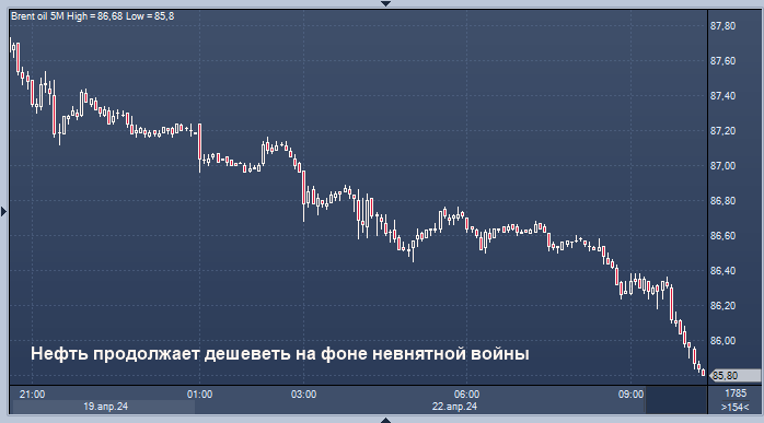 Цена на нефть Brent с поставкой в июне упала на 1% до $86,24 за баррель по состоянию на 14:31 в Сингапуре. Цена на нефть WTI с поставкой в мае, которая истекает в понедельник, упала на 0,9% до $82,43 за баррель. Более активный июньский контракт потерял 1% до $81,19.