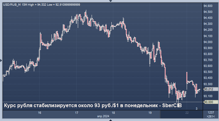 Курс рубля стабилизируется около 93 руб./$1 в понедельник, торги нефтью будут проходить в интервале $86-87/барр. Brent, полагают аналитики SberCIB Investment Research.