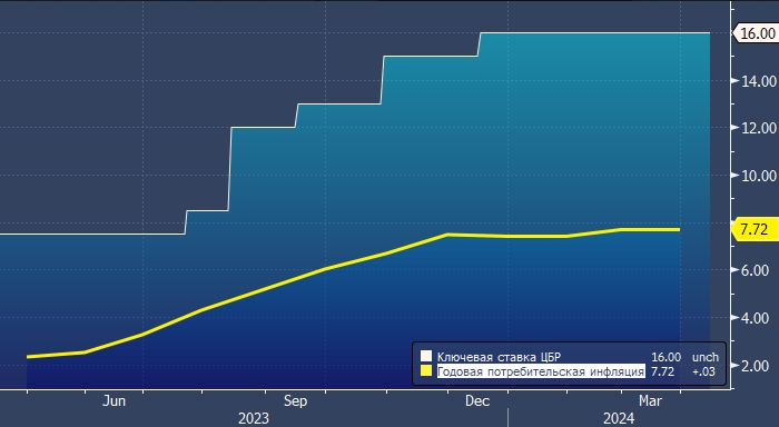 Реакция рубля на решение Банка России сохранить ключевую ставку на уровне 16,00% годовых