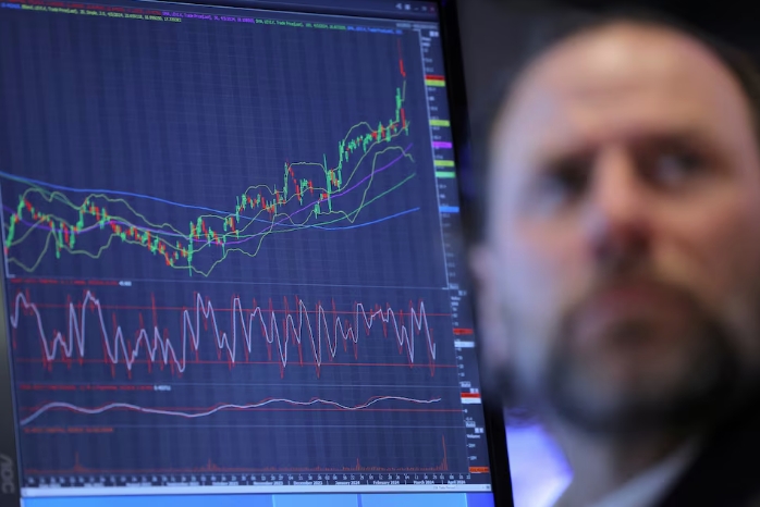 Трейдер работает в торговом зале Нью-Йоркской фондовой биржи (NYSE) в Нью-Йорке, США, 5 апреля 2024 года. REUTERS/Andrew Kelly