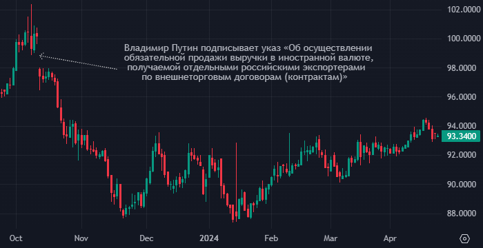 «Отсутствие определенности с судьбой требования о продаже валюты давило в последнее время на курс рубля», — пишет «Интерфакс». — «Продление не гарантировано с учетом того, что экспортеры сталкиваются с серьезными проблемами в расчетах и вынуждены использовать схемы взаимозачетов, подключая для этого импортеров, а курс рубля несмотря на то, что фактически требования указа могут в связи с этими обстоятельствами исполняться не полностью, в целом стабилен, пояснял один из собеседников агентства логику сторонников отказа от обязательной продажи.