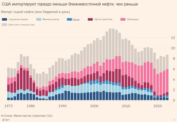 Цифры впечатляют. Два десятилетия назад США производили около 7 миллионов баррелей нефти в день и потребляли 21 миллион. Страны Персидского залива, такие как Саудовская Аравия и Кувейт, которые отправляют нефть через Ормузский пролив, были среди наиболее важных иностранных поставщиков США.