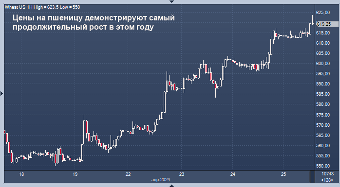 Цены на пшеницу на торгах в Чикаго закрылись ростом пятый день подряд, что соответствует самому продолжительному ралли в этом году, на фоне опасений по поводу погоды в ключевых странах-производителях и атак на украинскую инфраструктуру. В четверг подъем котировок продолжается.