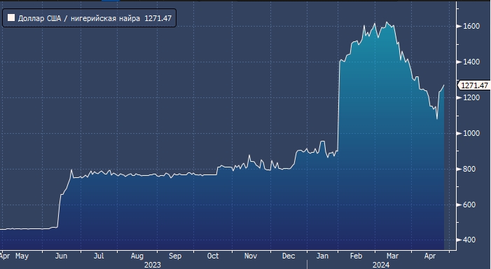 Валюта, которая 11 марта на официальном рынке достигла рекордно низкого уровня по отношению к доллару - N1,625, с тех пор выросла более чем на 26 процентов. В среду она торговалась по цене около N1 284 за доллар.