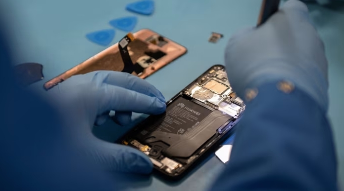 Смартфон Huawei разбирают на заводе в Оттаве, Канада © James Park/Bloomberg