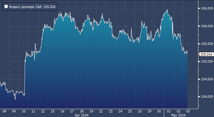 Индекс доллара, измеряющий валюту по отношению к шести аналогам, включая растущую иену, снизился на 0,08% до 105,22 после достижения самого низкого уровня с 11 апреля. Он приближался к самому большому недельному падению почти за два месяца, упав на 0,8% на этой неделе.