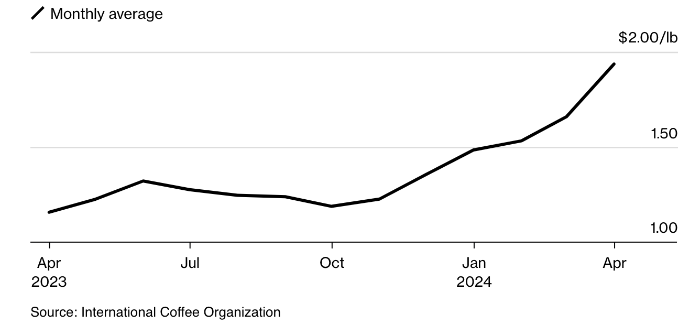 Ситуация может ухудшиться, поскольку засуха и жара поражают кофейные плантации Вьетнама, истощая запасы воды для орошения и снижая урожай 2024 года. Фьючерсные контракты в Лондоне росли в течение пяти из последних шести месяцев, что в конечном счете может привести к росту цен для потребителей.