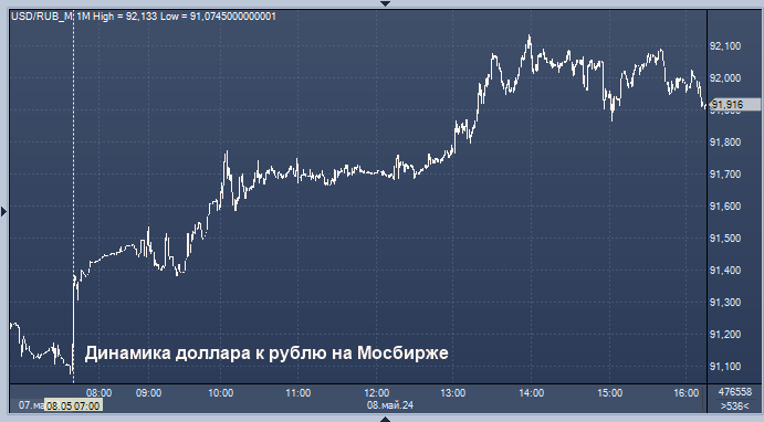 - 91,8239 рубля за 1 доллар
