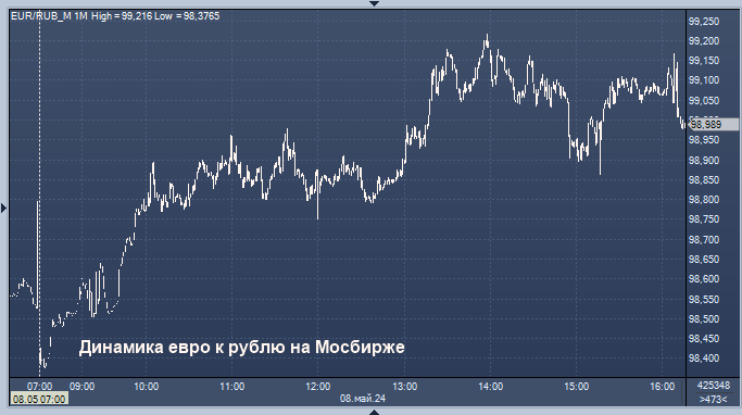 - 98,9461 рубля за 1 евро