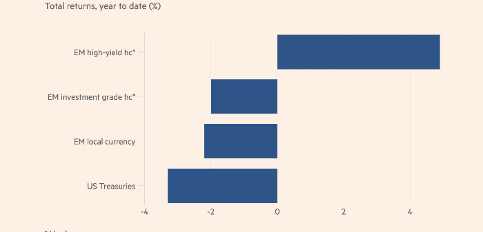Суверенные облигации развивающихся рынков, номинированные в иностранной валюте (главным образом в долларах США) и имеющие рейтинг «мусорный» — BBB или ниже — принесли инвесторам общий доход в размере 4,9% в этом году. Для сравнения: индекс облигаций Казначейства США потерял 3,3%.