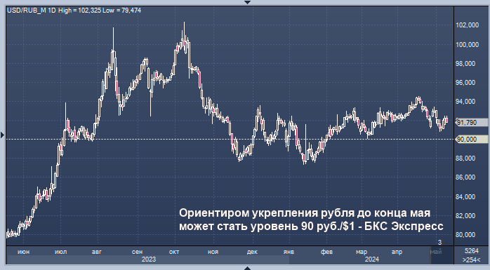 Возможно укрепление рубля по отношению к доллару США до уровня 90 руб./$1 до конца текущего месяца, полагает эксперт БКС Экспресс Михаил Зельцер.