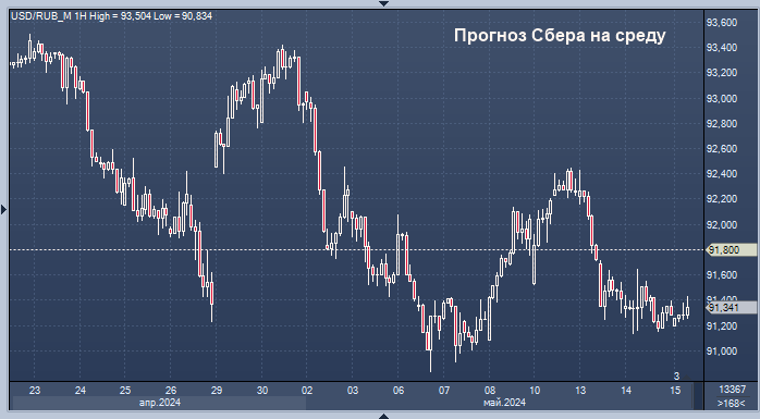 "В центре внимания в среду будет инфляция в США за апрель. Если она вновь окажется выше ожиданий, то доллар может глобально подорожать на 0,5-1%. В этом случае рубль может ослабнуть до 91,8 руб./$1", - прогнозируют в инвестбанке.