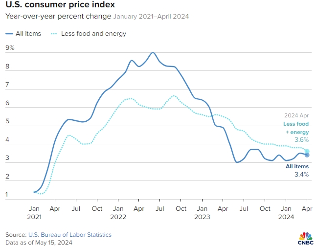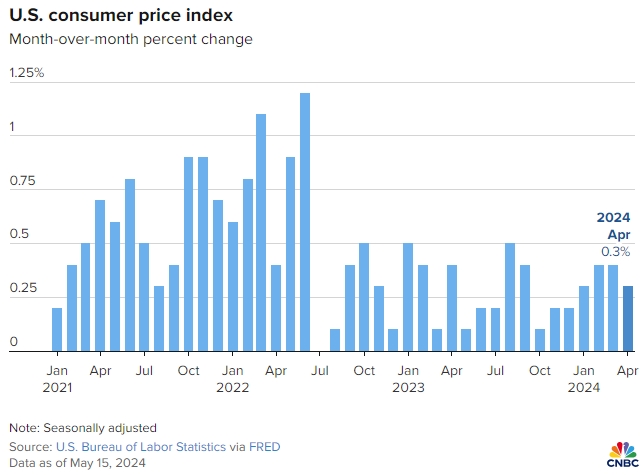 В апреле инфляция немного снизилась, обеспечив, по крайней мере, некоторое облегчение для потребителей, но все еще удерживаясь выше того уровня, который предполагает неизбежное снижение процентных ставок.
