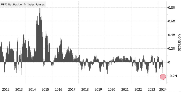Медвежье позиционирование совпало с оттоком иностранного капитала. С начала апреля инвесторы забрали из индийских акций около $4 млрд, что отражает осторожный прогноз относительно исхода выборов. Низкая явка избирателей во время недавних этапов голосования, породила разговоры о том, что менее решительная победа Моди может помешать его способности проводить политические реформы, включая развитие инфраструктуры и производства.