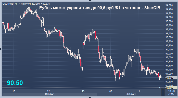 Рубль может укрепиться по отношению к доллару США до уровня 90,5 руб./$1 в четверг, считают аналитики SberCIB Investment Research.