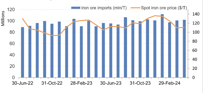 - Внутреннее производство железной руды в Китае остается стабильным по содержанию железа, при этом любое увеличение добычи компенсируется снижением качества.