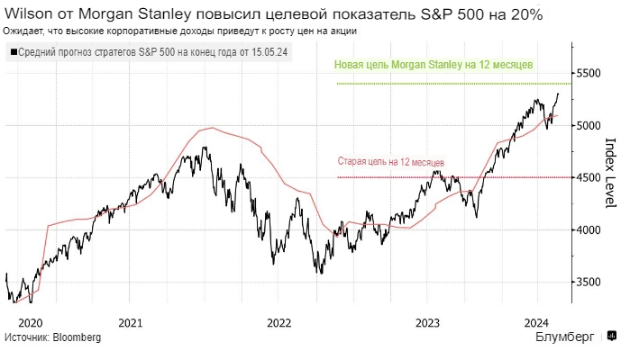 Между тем, стратеги Deutsche Bank AG также повысили целевой уровень индекса на конец 2024 года до 5 500 с 5 100 в пятницу.