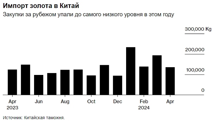 Зарубежные закупки физического золота упали до 136 тонн в апреле, что на 30% меньше, чем в предыдущем месяце, и является самым низким показателем за год, согласно последним таможенным данным.