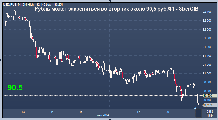 Рубль может закрепиться во вторник около 90,5 руб./$1, полагают аналитики SberCIB Investment Research.