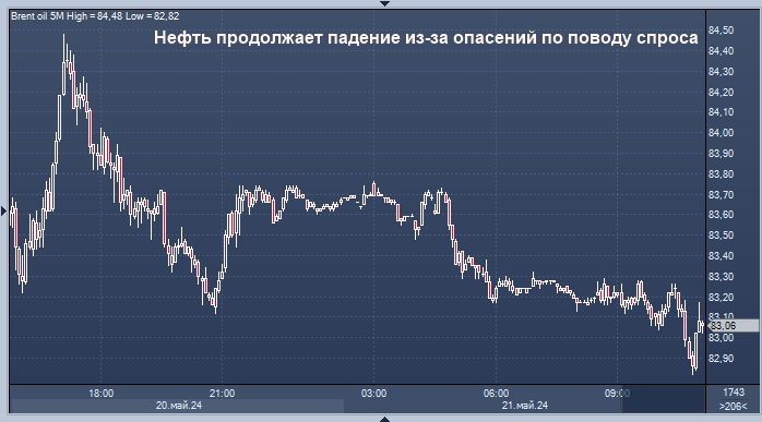 Цена на нефть Brent с поставкой в июле упала на 0,7% до 83,16 долл. за баррель по состоянию на 14:45 в Сингапуре.