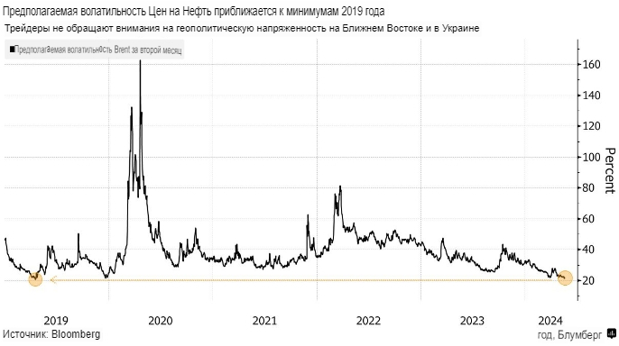 Календарный спред на поставку нефти Brent сузился до самого малой бэквордации с января, в то время как управляющие деньгами продолжали снижать ставки на рост котировок. Фьючерсы торгуются в узком диапазоне, а подразумеваемая волатильность находится на минимальном уровне с 2019 года.