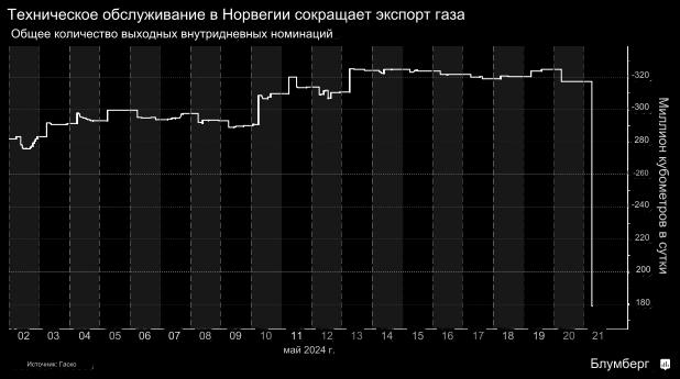 Сейчас рынок сосредоточен на норвежских предприятиях Troll и Kollsnes, поставки которых сократились из-за сезонного обслуживания. Потоки должны начать восстанавливаться в среду, согласно графикам сетевого оператора Gassco AS.