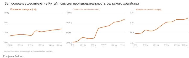 Согласно документу, опубликованному в конце апреля, к 2033 году правительство планирует обеспечить самообеспечение основными зерновыми и бобовыми на 92 %, по сравнению с 84 % в 2021-2023 годах, что будет способствовать достижению цели президента Си Цзиньпина - стать "сельскохозяйственной державой" к середине века.