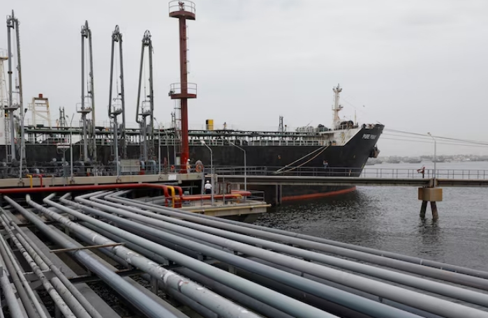 Российский нефтеналивной танкер Pure Point, перевозящий сырую нефть, стоит на якоре в порту в Карачи, Пакистан, 13 июня 2023 года. REUTERS/Akhtar Soomro