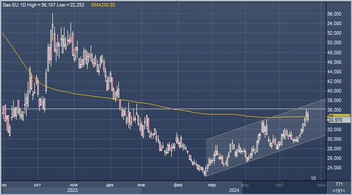 Фьючерсы на природный газ в Европе завершили вторую подряд неделю ростом и достигли на этой неделе максимума с декабря 2023 года на уровне 36,24 евро/мегаватт-час.
