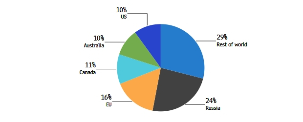 Россия доминирует в экспорте пшеницы, на долю которой, как ожидается, в следующем сезоне придется четверть экспорта