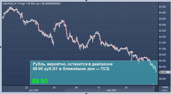 Курс валютной пары доллар/рубль, вероятно, останется в диапазоне 88-90 руб./$1 в ближайшие дни, говорится в комментарии начальника отдела экономического и отраслевого анализа Промсвязьбанка (ПСБ) Евгения Локтюхова.