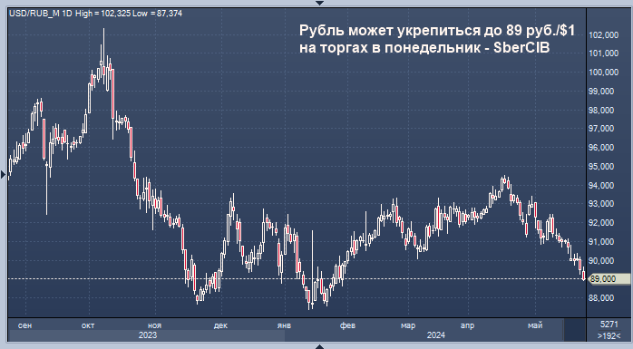 Рубль может укрепиться до 89 руб./$1 на торгах в понедельник, а цена барреля Brent, скорее всего, останется в пределах $82-83, полагают аналитики SberCIB Investment Research.