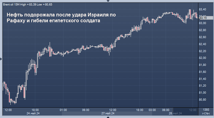 Мировой эталон Brent держался вблизи отметки 83 доллара за баррель, а West Texas Intermediate - вблизи 79 долларов. Египетские военные подтвердили, что в понедельник на переходе Рафах в Газу был убит пограничник, что еще больше обострило и без того напряженные отношения с Израилем.