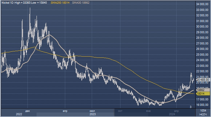 На долю российского металла в конце апреля приходилось треть запасов никеля на LME. А вот количество китайского никеля в системе выросло с нуля в августе прошлого года до 12 096 тонн.