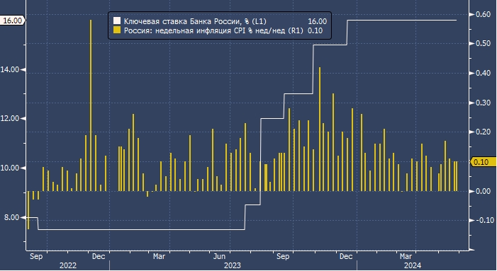 Bloomberg: апрельская инфляция в России указывает, что не стоит ждать снижения ставок до конца года