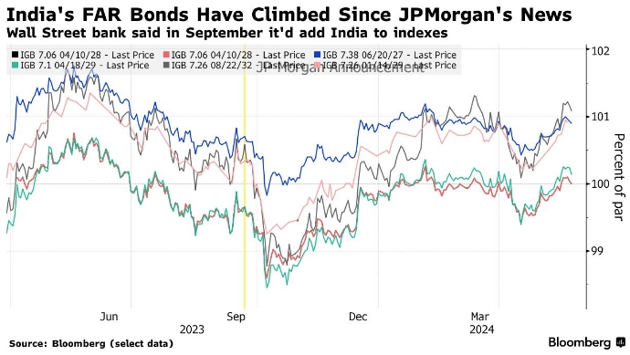 В настоящее время в Индии происходят два знаковых события. Премьер-министр Нарендра Моди претендует на третий срок на выборах, которые завершатся в ближайшие дни. Кроме того, в конце июня суверенные облигации страны должны присоединиться к флагманскому рейтингу облигаций развивающихся рынков JPMorgan Chase & Co., что, как ожидается, привлечет до 40 миллиардов долларов иностранного капитала в страну, которая долгое время стремилась оградить себя от потоков горячих денег.